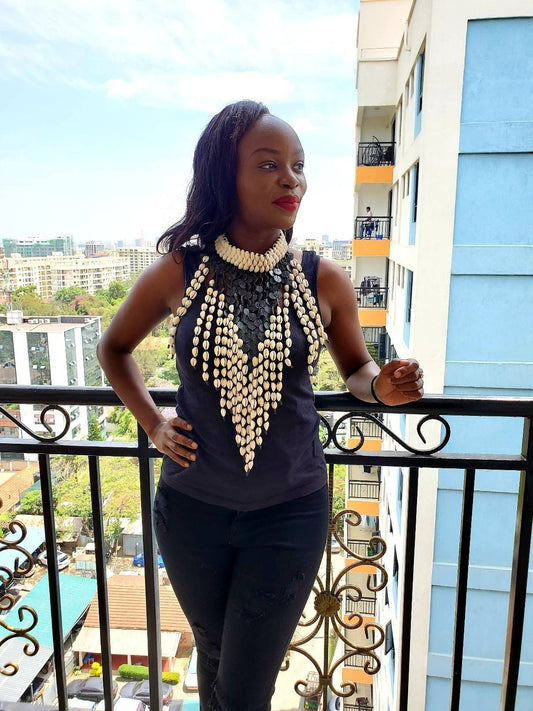 Original African Cowrie Shell Tribal Bibb Chocker Necklace for Men & Women.