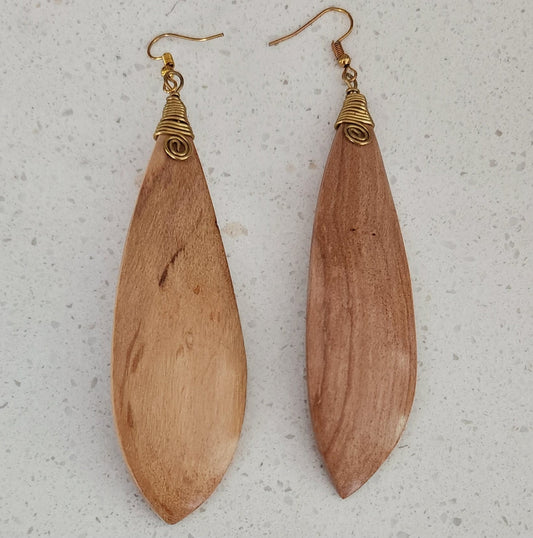 Natural Wood Long Bar Earrings/African Leafy Wooden Earrings different sizes.