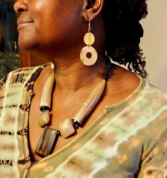 Recycled Horn Jewelry Set/Handcrafted Necklace/Kenya Jewelry/Christmas Gift.