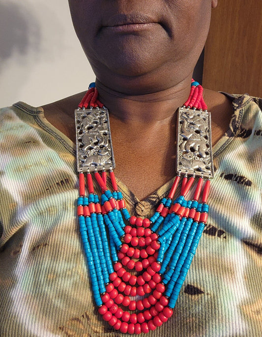 Multi Strand Long Indian Statement Necklace, 15 inches.