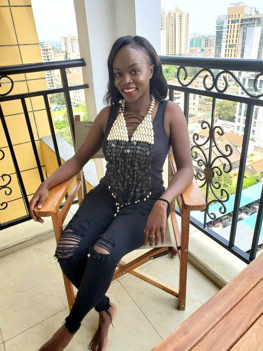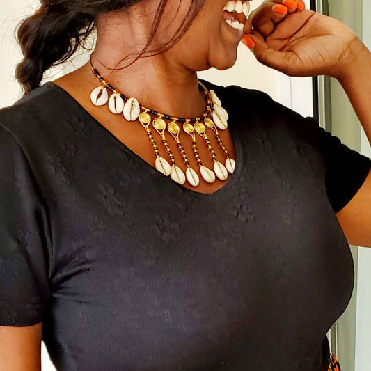 Cowrie Chocker/Cowrie Shell Beaded Necklace/Sea Shell Necklace 16" round.