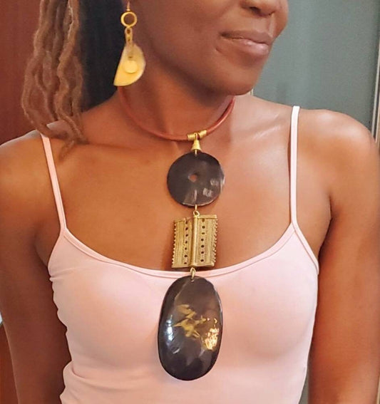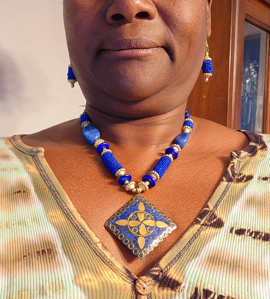 Colorful Stone & Brass Emblem Necklace set/Gift idea.