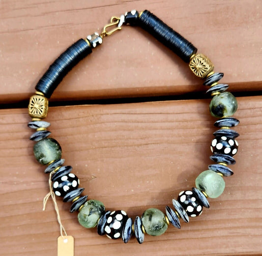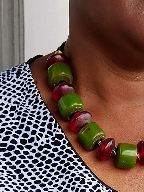 Chunky Mix Batik Bone in Green Necklace 100% Authentic/Unisex.