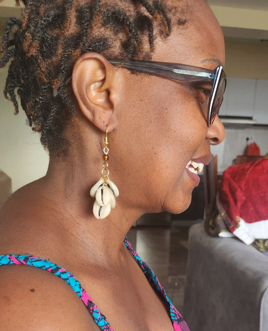 Cowrie Shell Earrings/African Dangling 6 Cowrie Earrings/Ethnic Earrings/Gift for her.
