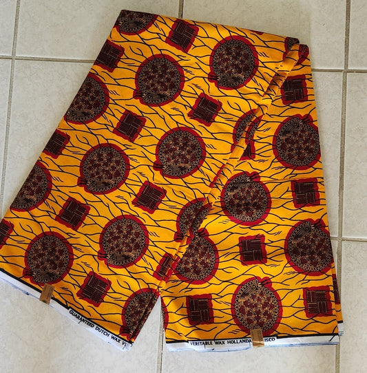 African Print Burgundy and Gold 100% Cotton/sold per yd or 6 yards.