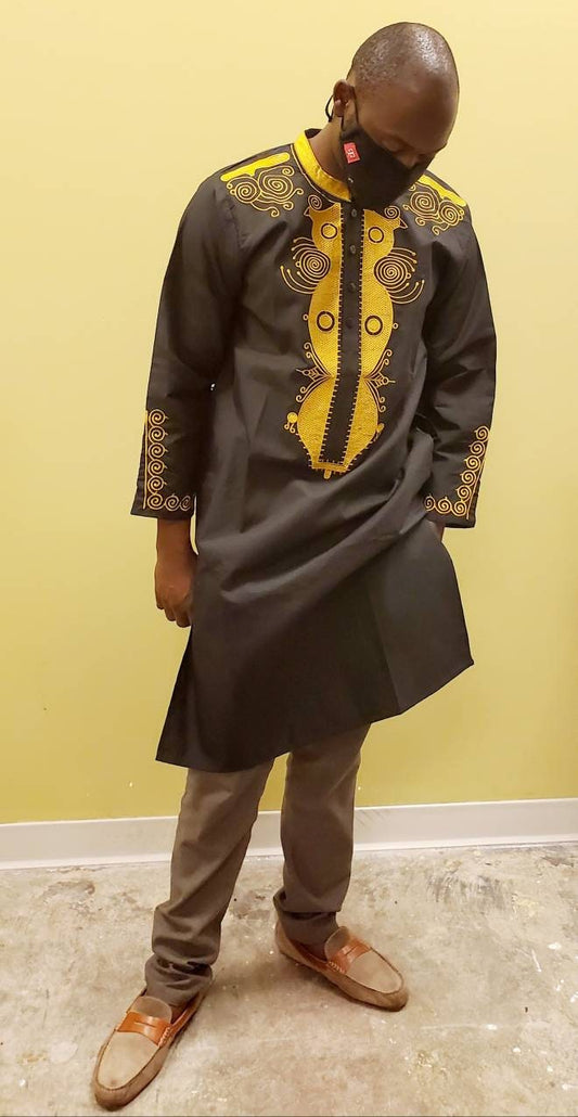 Black & Gold African Men Classic Dashiki Men Shirts/Kaftans with gold embroidery