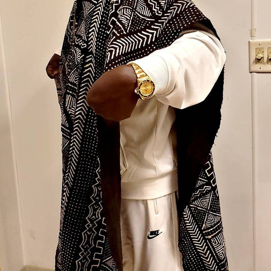 Bogolan African Mudcloth Poncho Scarf, split in the middle and both sides 100% Cotton made in Mali. UNISEX