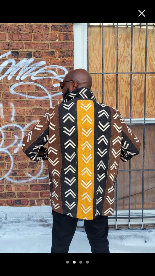 Big and Tall Mudcloth Shirt/Men's Mudcloth Shirt/Oversize Jacket for a tall person/ Chest 56"x 32" Long.