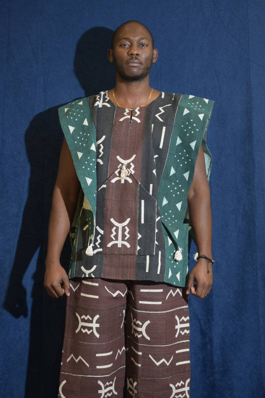 African 2pc Mudcloth Bambara Bogolan set handwoven in Mali/Men/Women/Unisex.