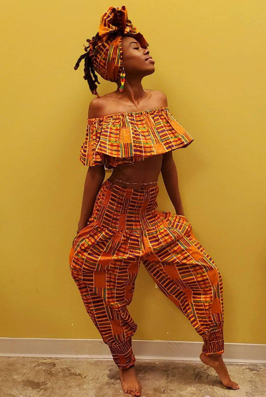 African Kente Pantset With Scarf/ AfricanPants/ African Women's Pants Pants African Style Kente Print African fits S-XL.