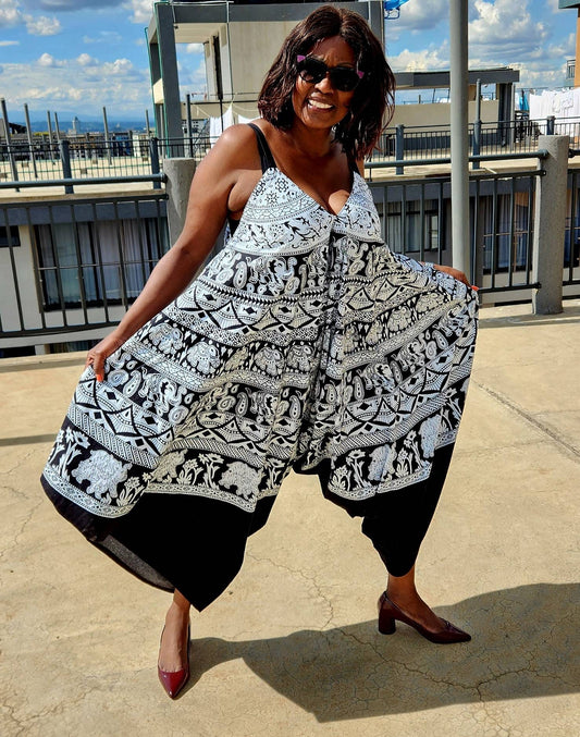 African Jumpsuit/Bohemian Jumpsuit/Black and White Free size.