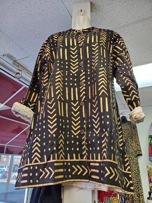 Reversible Mudcloth Print Swing Jacket/Mudcloth Coats/Belma Brand.