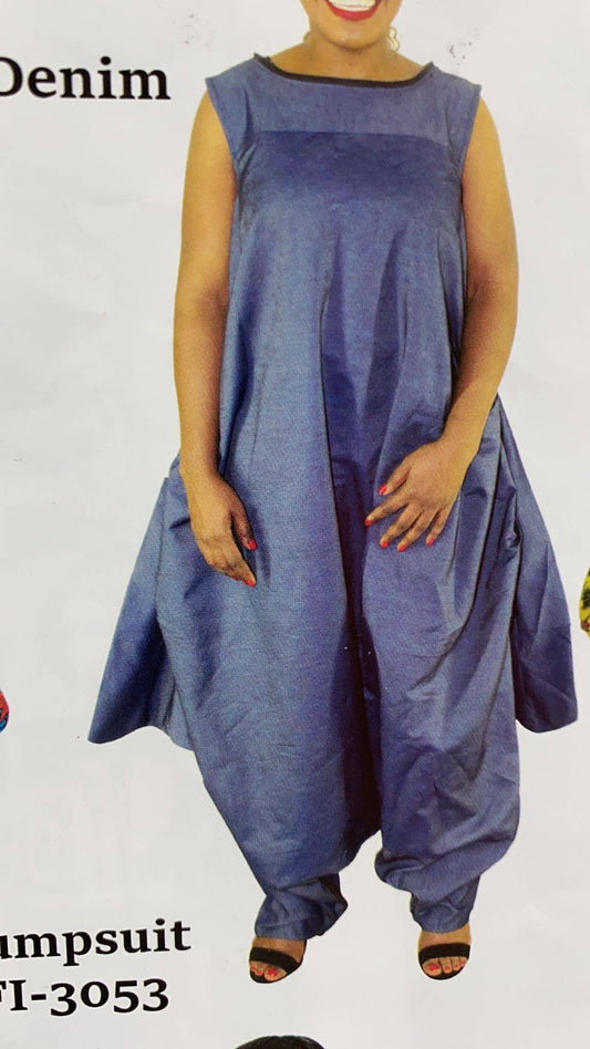 Plus Size African Overall/Denim Jumpsuit Detachable Mockneck by Minala.