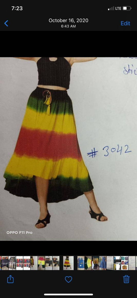 Rasta Tie Dye Maxi Skirt with Elastic Waist and pockets.