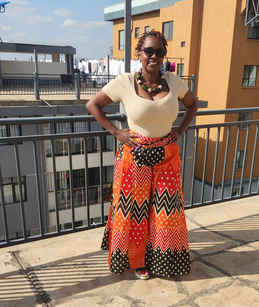 Silk Palazzo Maxi/Orange Full flaired with two pockes. One size fits upto L.