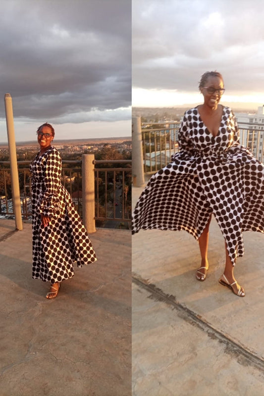 Polka Dot Wrap Dress/Black & White African Wrap Dress/One size fits upto XL