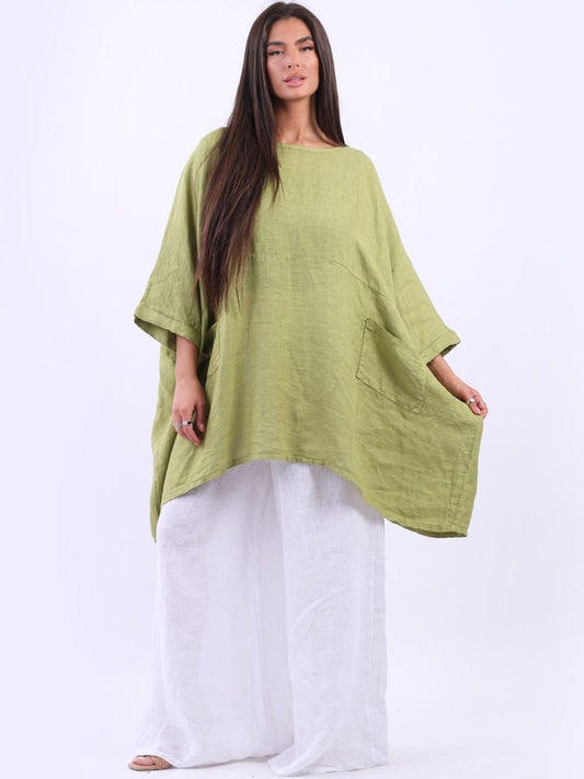 Plain Front Pockets Oversized Classy Top/Solid Linen Top.