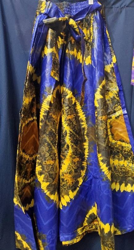 Brocade Palazzo Maxi/Navy Blue Waxed Full flaired with two pockes. 100% cotton, one size fits most.