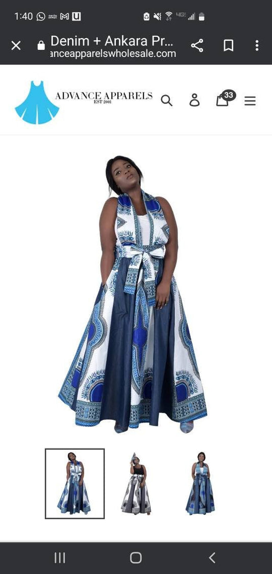 Denim Ankara Dashiki Maxi Skirt.