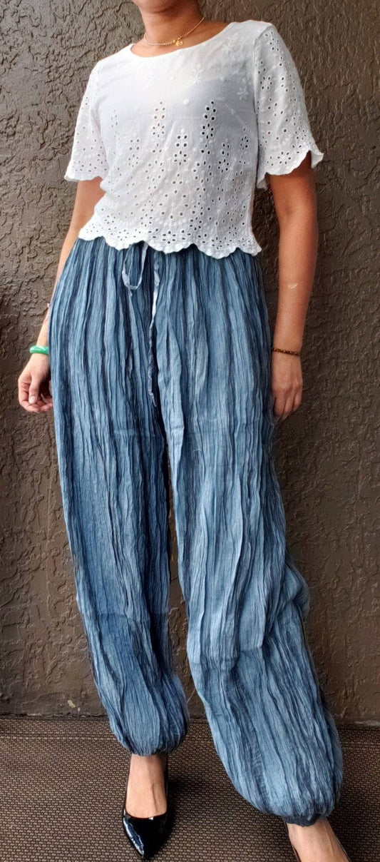 Cotton Harem Wrinkle Pant- Solid, 100% cotton/Gauze Baloon Pants.