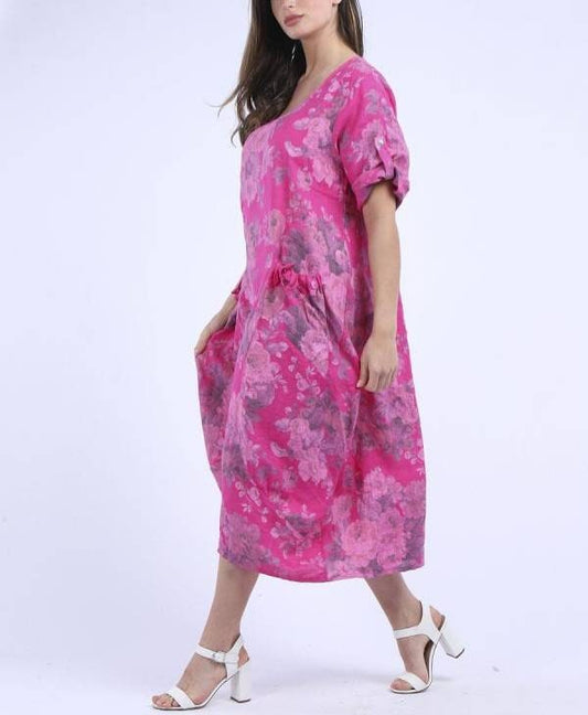 Classy Floral Print Lagenlook Linen Women Dress.