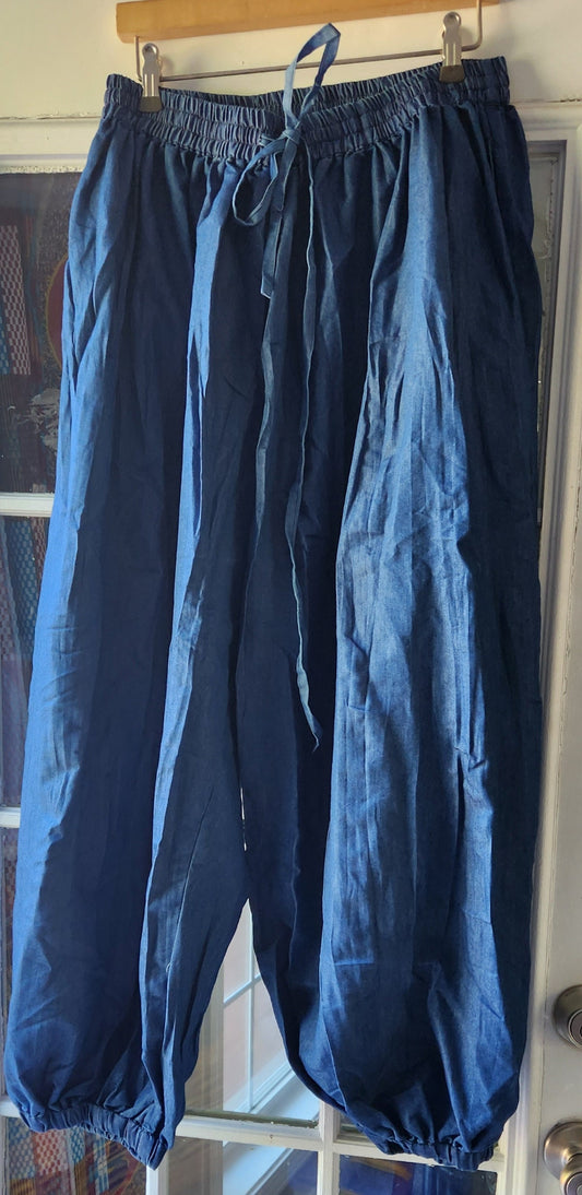 Denim Bubble Pant- Solid, 100% cotton with Elastic ankle/Baggy Fit M-XL.