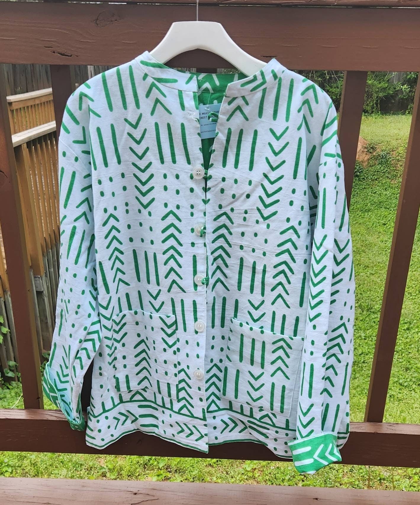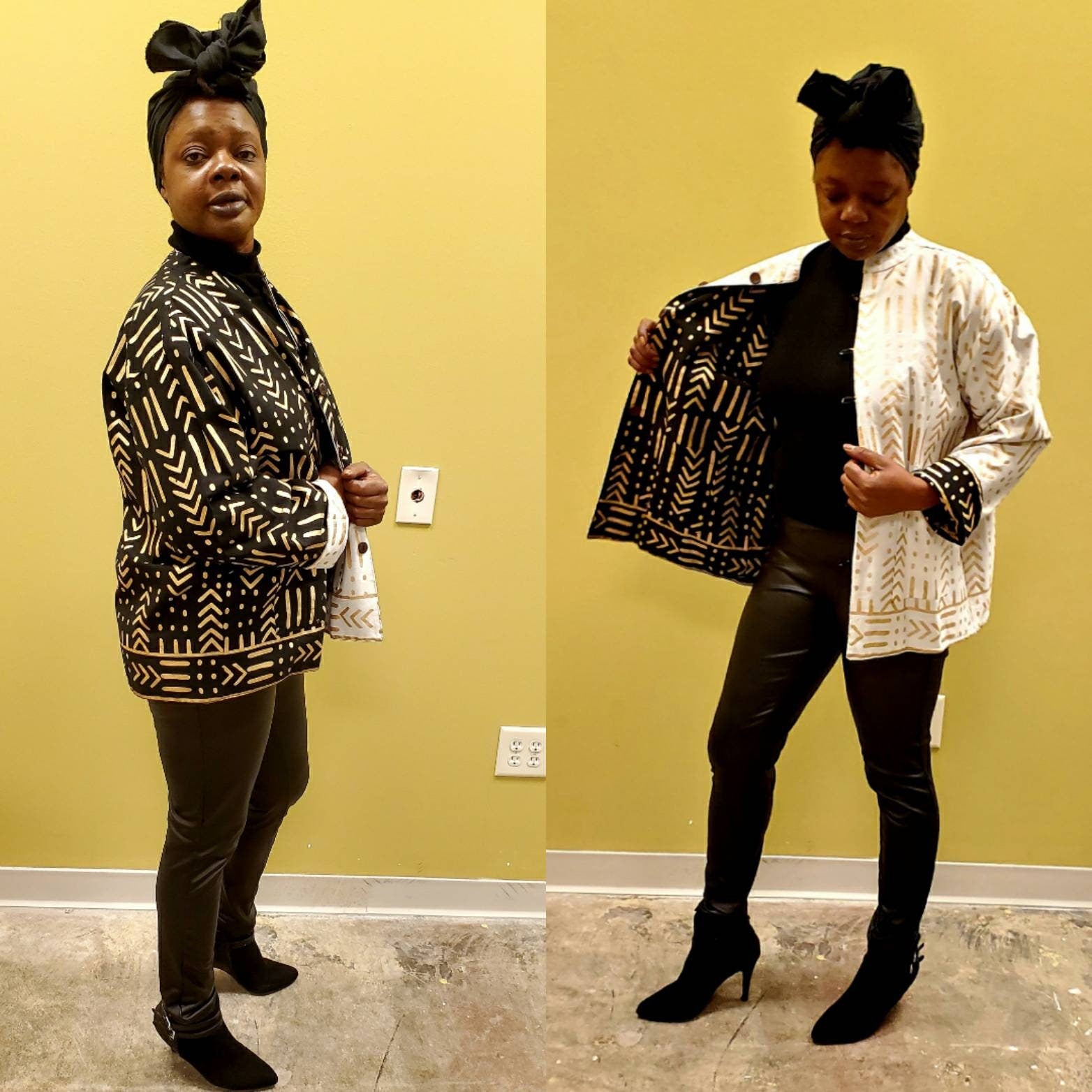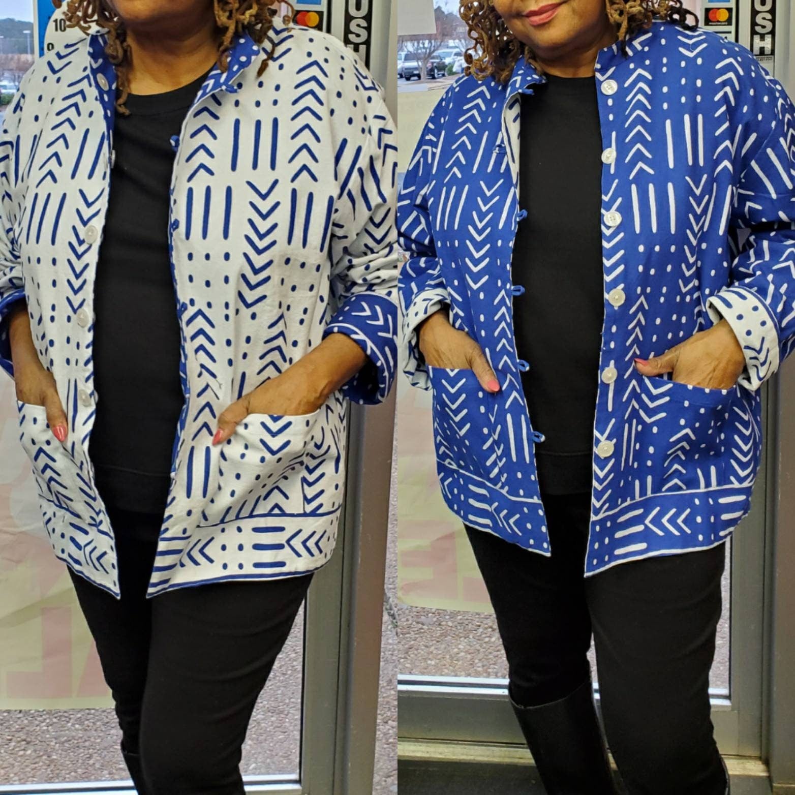 Amazingly beautiful Reversible Mudcloth print jacket. Look at the photos on how they look inside and out.