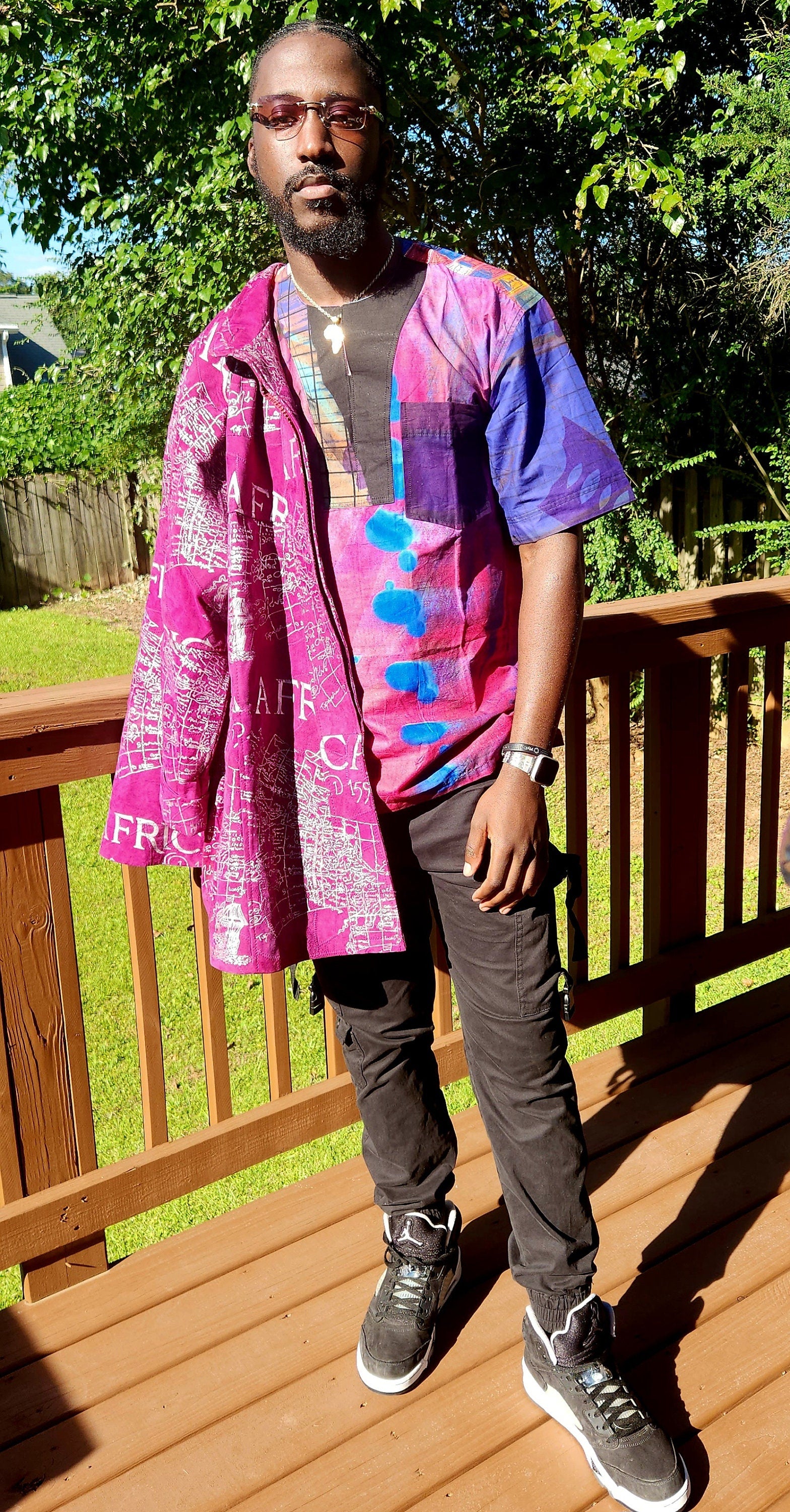 Pink Shade Splash Dashiki Shirt/African Mens Shirt size L 51".